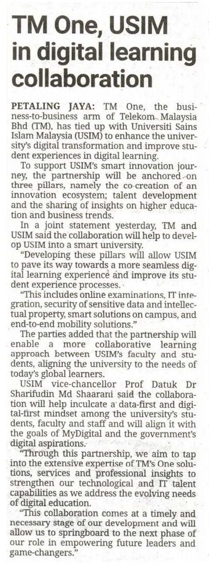 TM One, USIM in digital learning collaboration