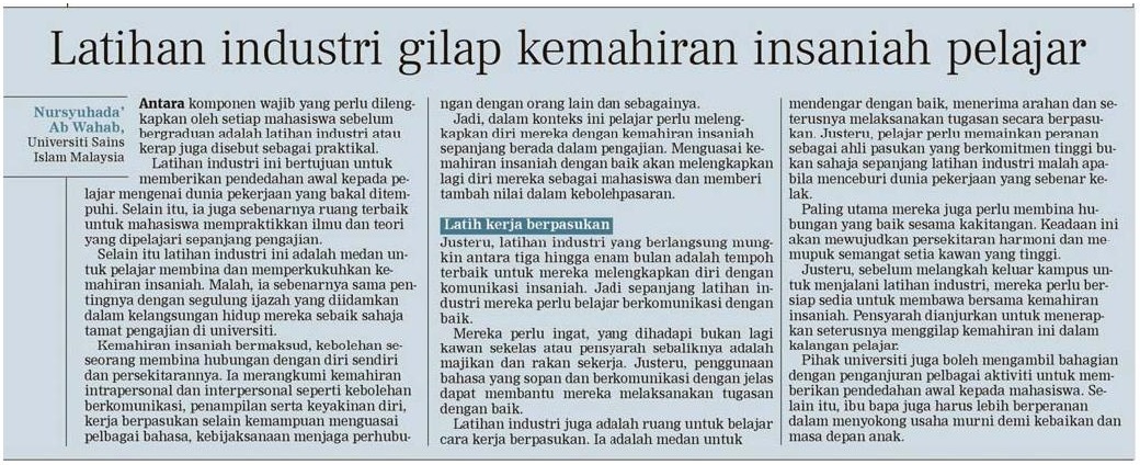 Latihan industri gilap kemahiran insaniah pelajar