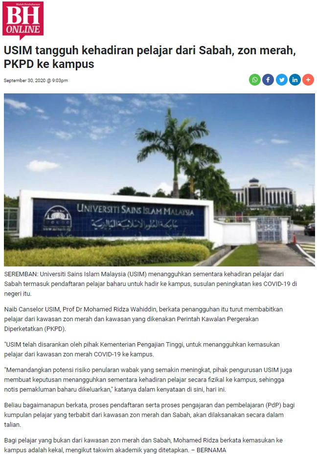 USIM Tangguh Kehadiran Pelajar Dari Sabah