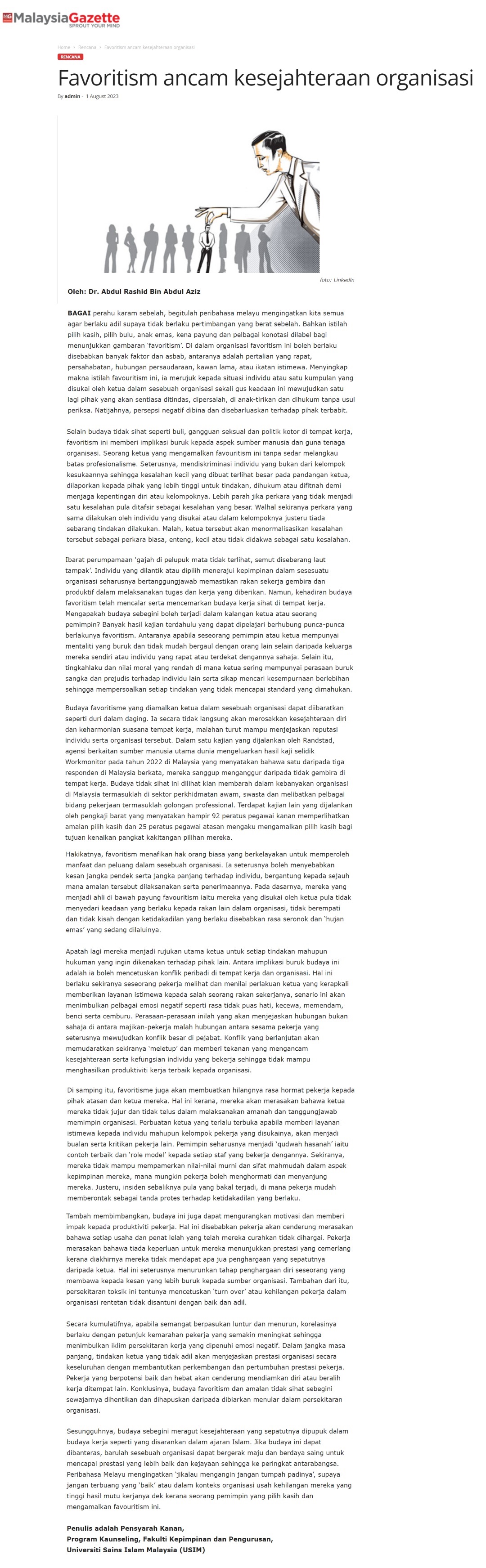 Favoritism ancam kesejahteraan organisasi