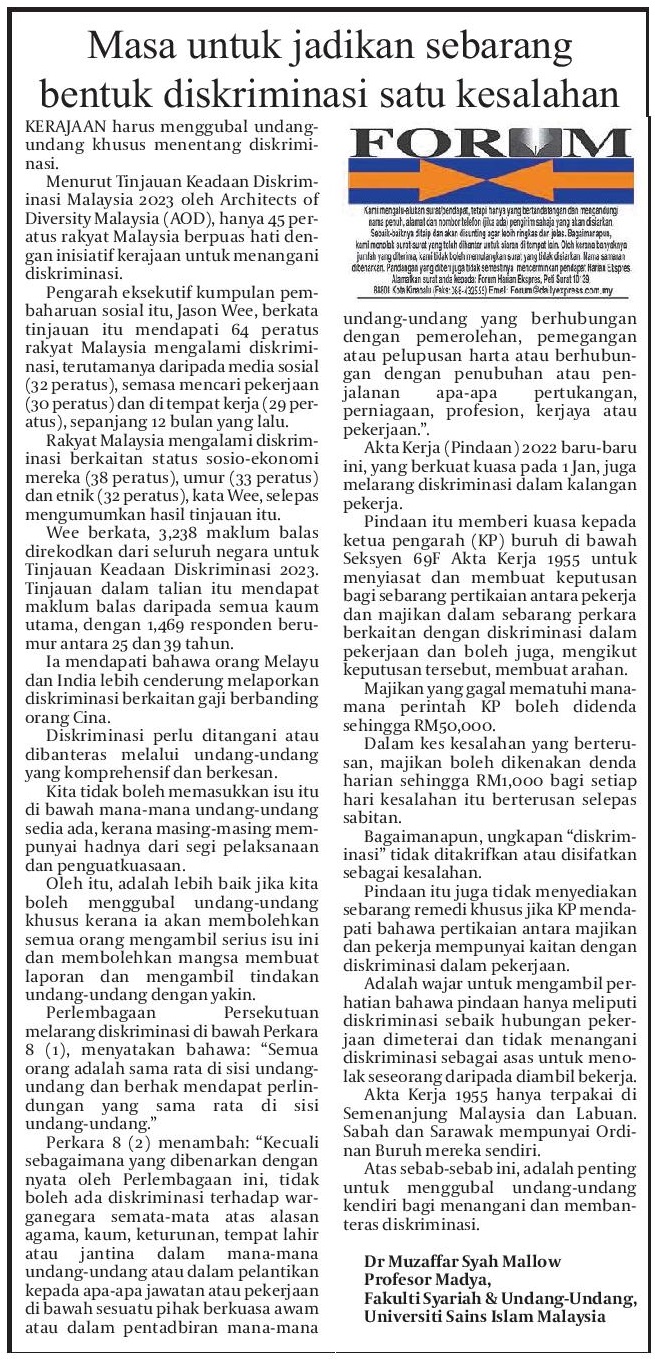 Masa untuk jadikan sebarang bentuk diskriminasi satu kesalahan