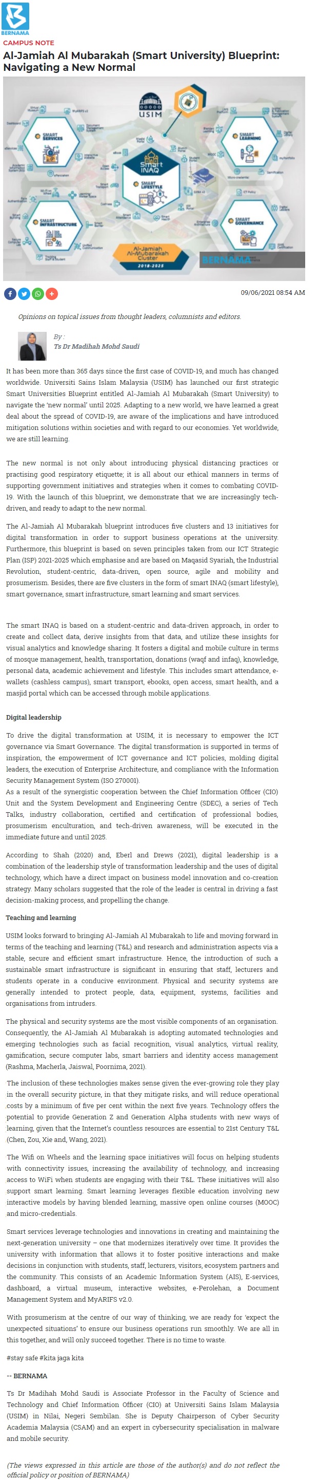 Al-Jamiah Al Mubarakah (Smart University) Blueprint ; Navigating A New Normal