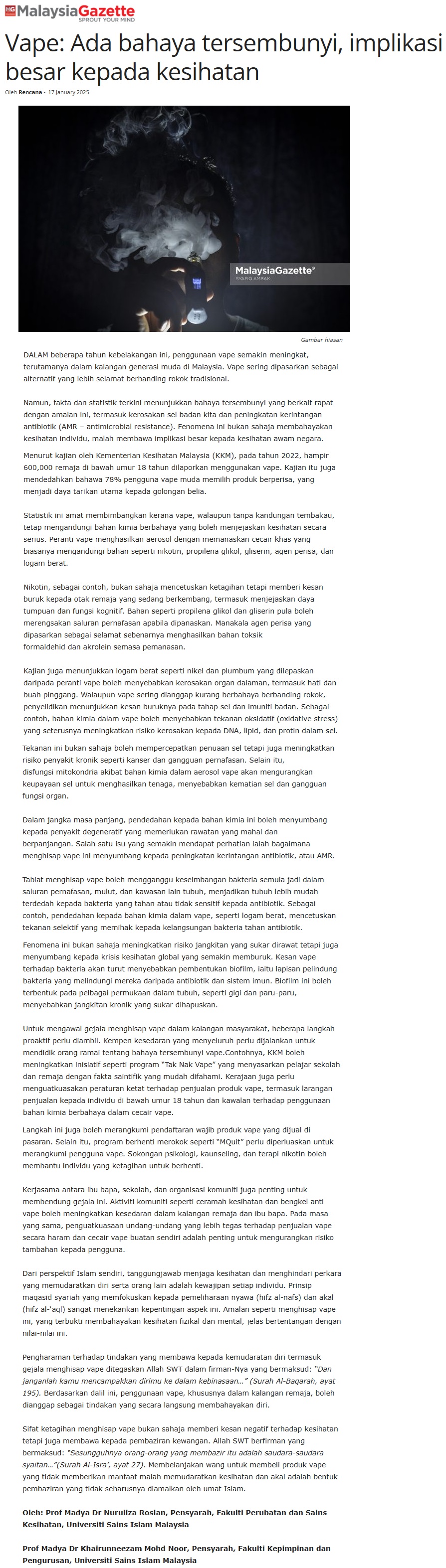 VAPE: ADA BAHAYA TERSEMBUNYI, IMPLIKASI BESAR KEPADA KESIHATAN