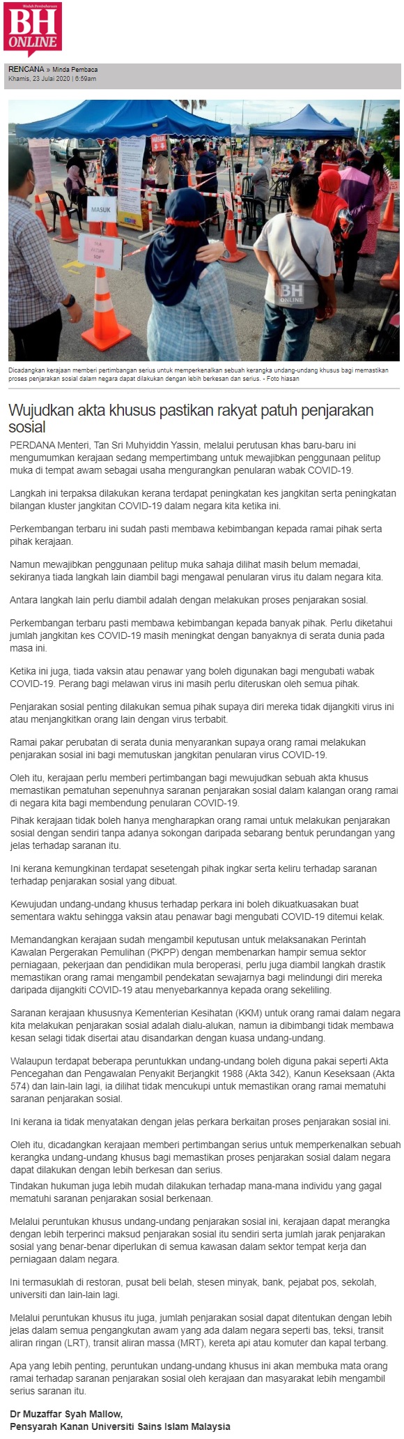 Wujudkan Akta Khusus Pastikan Rakyat Patuh Penjarakan Sosial