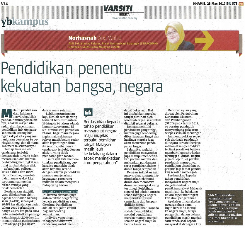 BH - PENDIDIKAN PENENTU KEKUATAN BANGSA, NEGARA, 23 MAC 2017, MS V14 (VARSITI).jpg