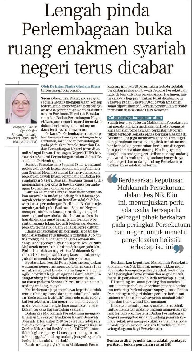 Lengah pinda perlembagaan buka ruang enakmen syariah negeri terus dicabar