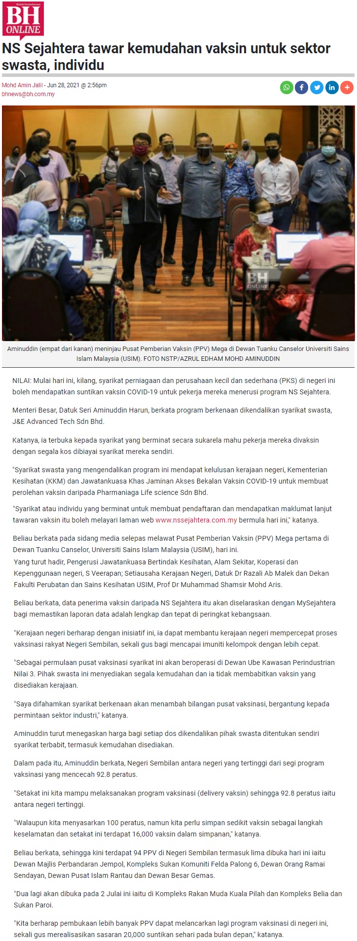 NS Sejahtera Tawar Kemudahan Vaksin Untuk Sektor Swasta, Individu