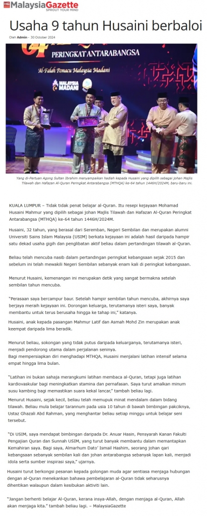 Usaha 9 tahun Husaini berbaloi