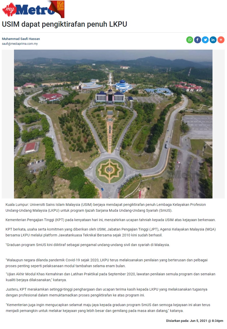 USIM Dapat Pegiktirafan Penuh LKPU