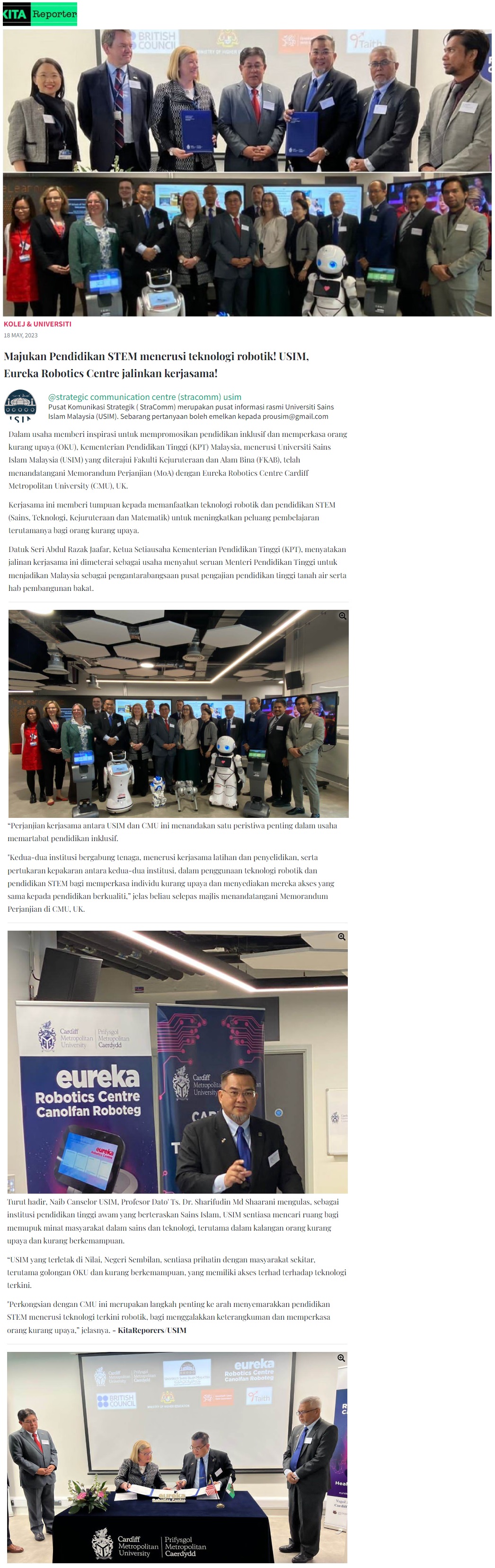 Majukan Pendidikan STEM Menerusi Teknologi Robotik, USIM & EUREKA Robotic Centre Jalinkan Kerjasama