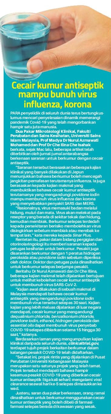 Cecair Kumur Antiseptik Mampu Bunuh Virus Influenza Korona