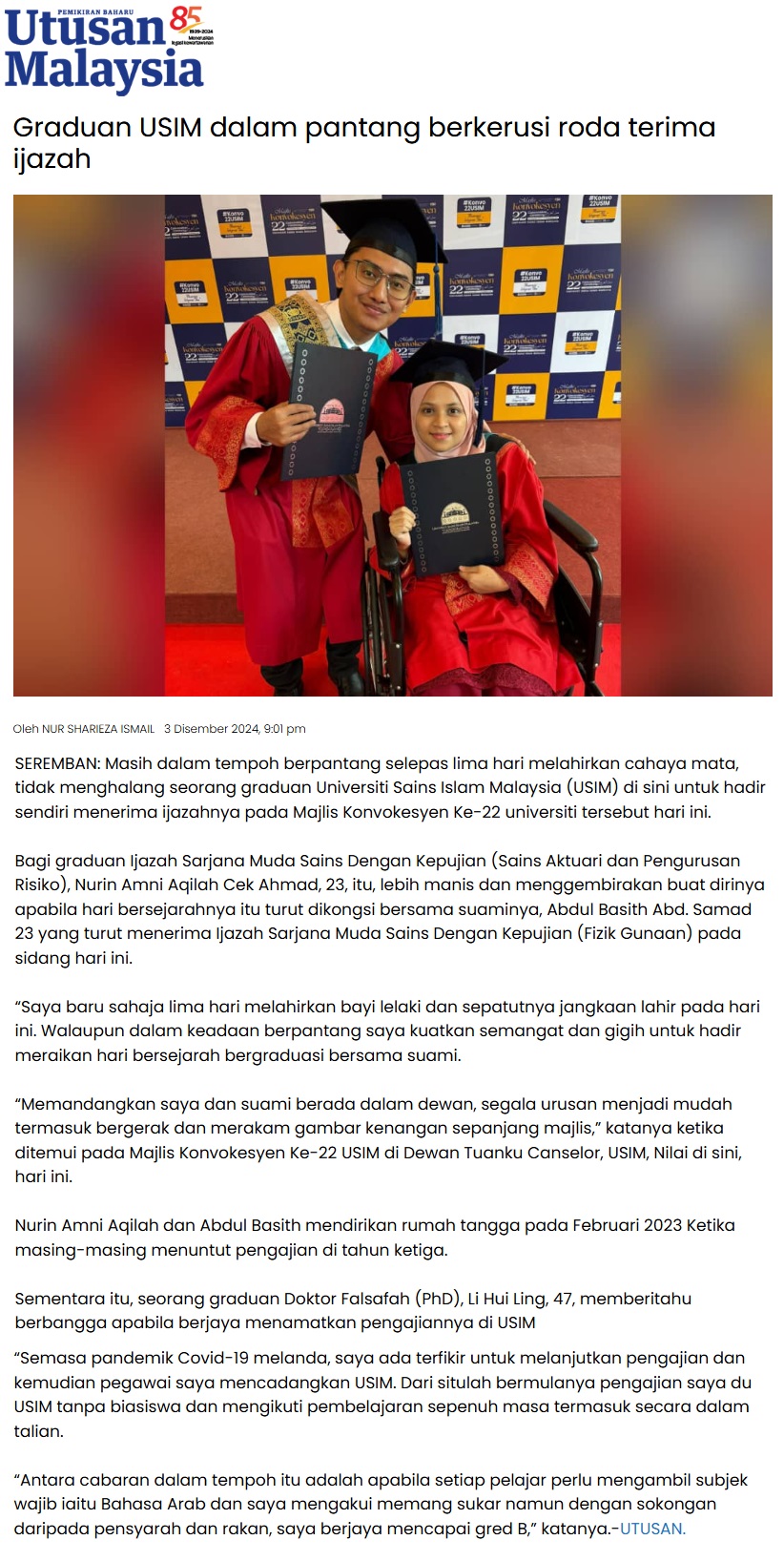 GRADUAN USIM DALAM PANTANG BERKERUSI RODA TERIMA IJAZAH