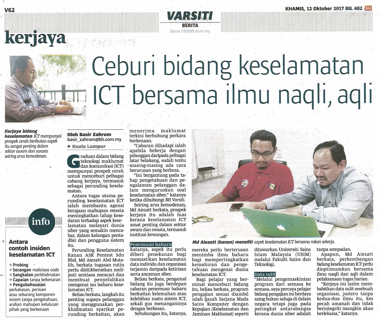BERITA HARIAN - CEBURI BIDANG KESELAMATAN ICT BERSAMA ILMU NAQLI, AQLI, 12 OKTOBER 2017, MS V62 (VARSITI).jpg