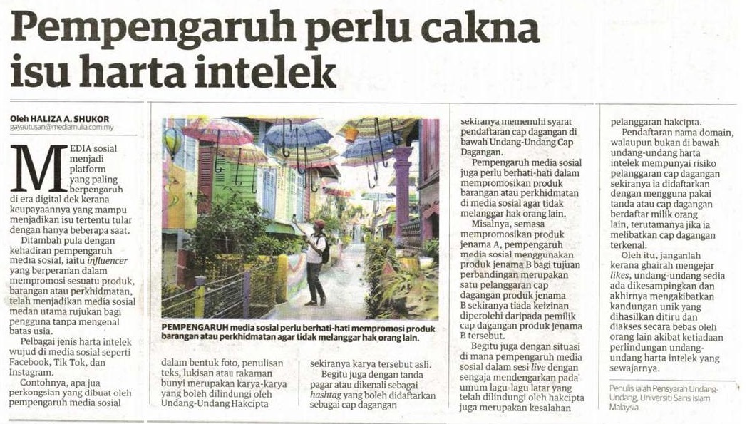 Pempengaruh perlu cakna isu harta intelek