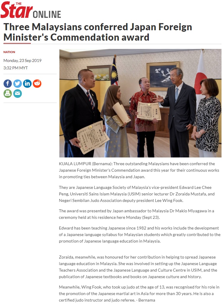 Three Malaysians Confered Japan Foreign Minister'S Commendation Award