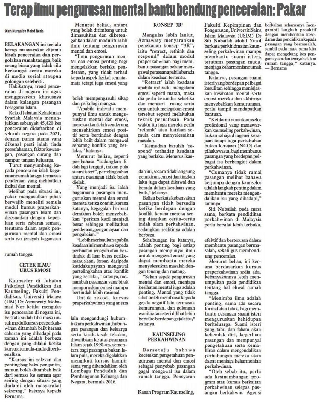 Terap ilmu pengurusan mental, bantu bendung penceraian - Pakar