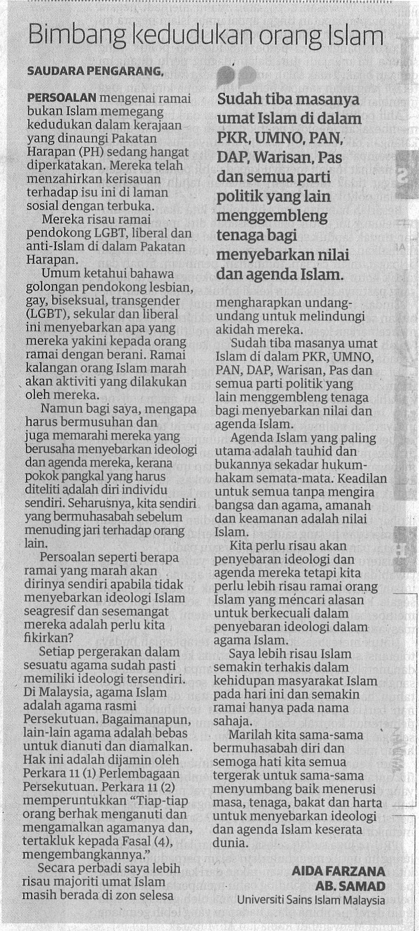Bimbang Kedudukan Orang Islam