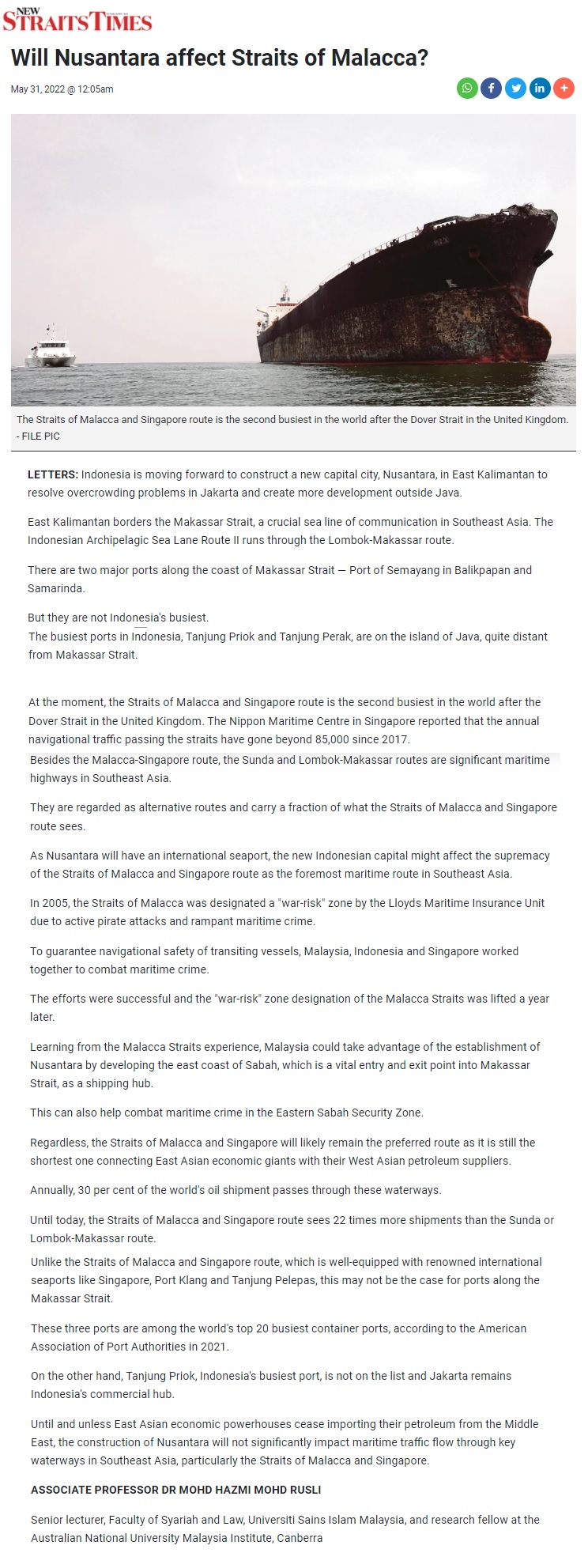 Will Nusantara Affect Straits Of Malacca?