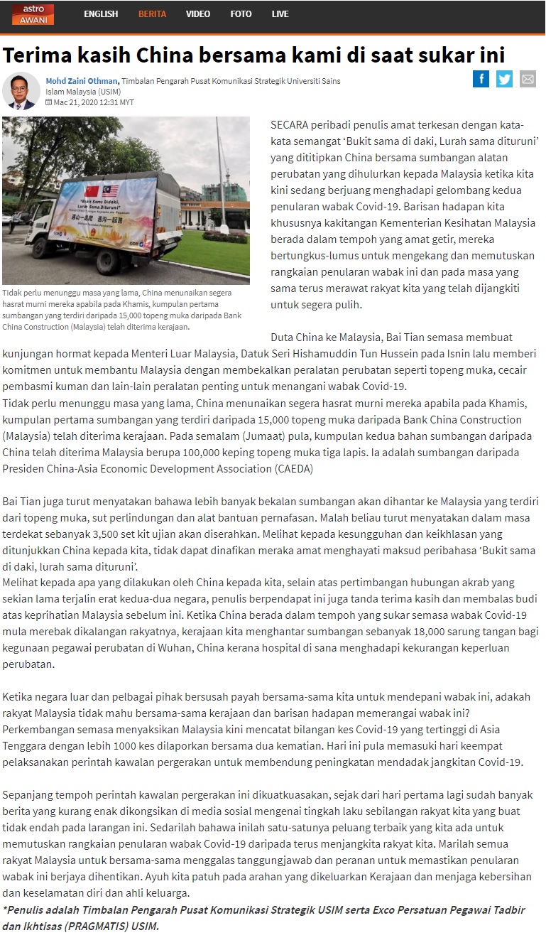 Terima Kasih China Bersama Kami Di Saat Sukar