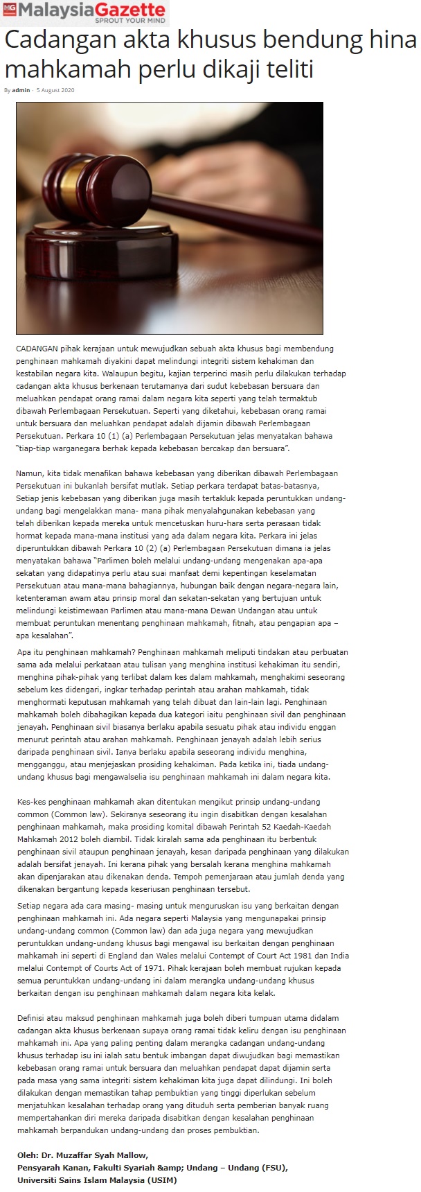 Cadangan Akta Khusus Bendung Hina Mahkamah Perlu Dikaji Teliti