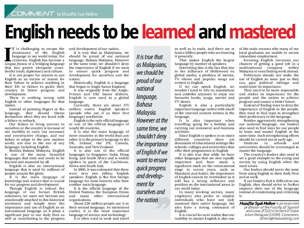English Needs To Be Learned And Mastered