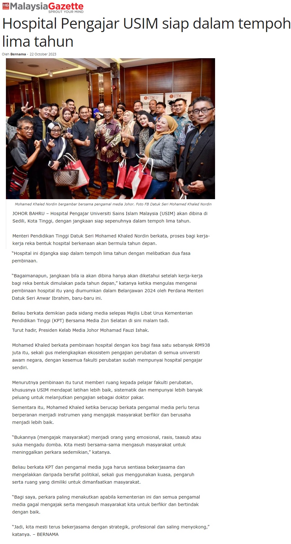 Hospital pengajar USIM siap dalam tempoh lima tahun