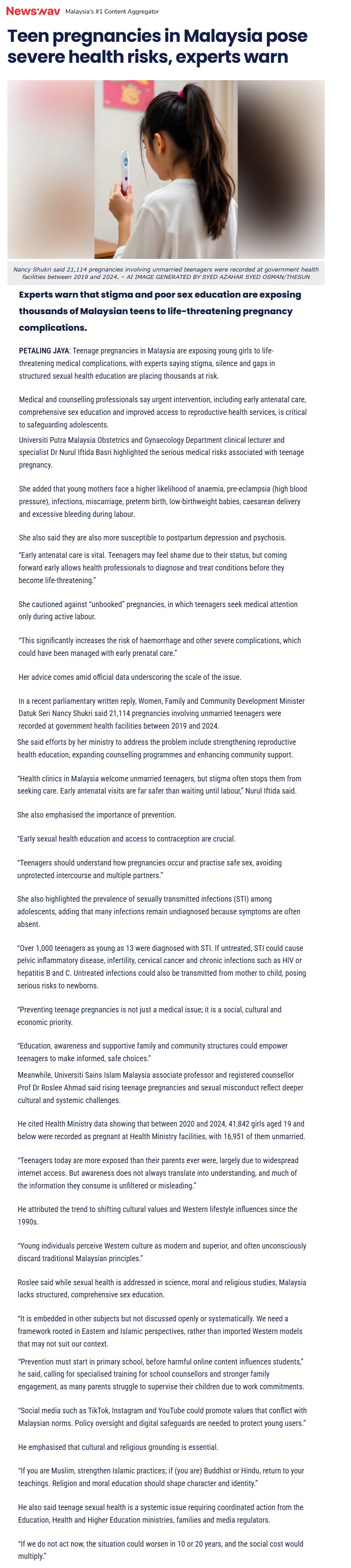 TEEN PREGNANCIES IN MALAYSIA POSE SEVERE HEALTH RISKS