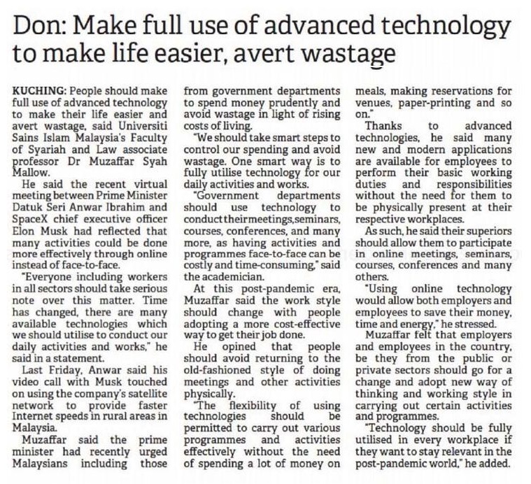 Don: Make full use of advanced technology to make life easier, avert wastage