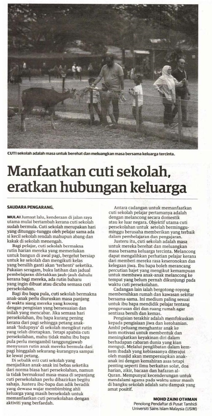 MANFAATKAN CUTI SEKOLAH , ERATKAN HUBUNGAN KELUARGA