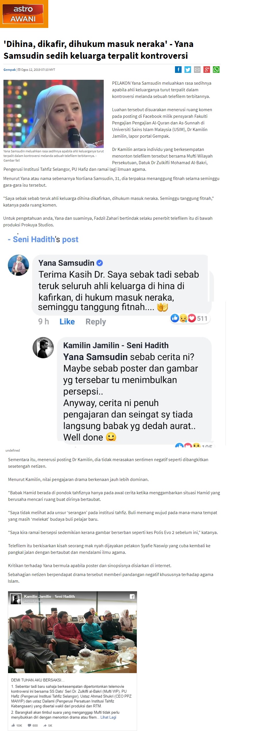 Dihina, Dikafir,Dihukum Masuk Neraka -Yana Samsudin Sedih Keluarga Terpalit Kontroversi
