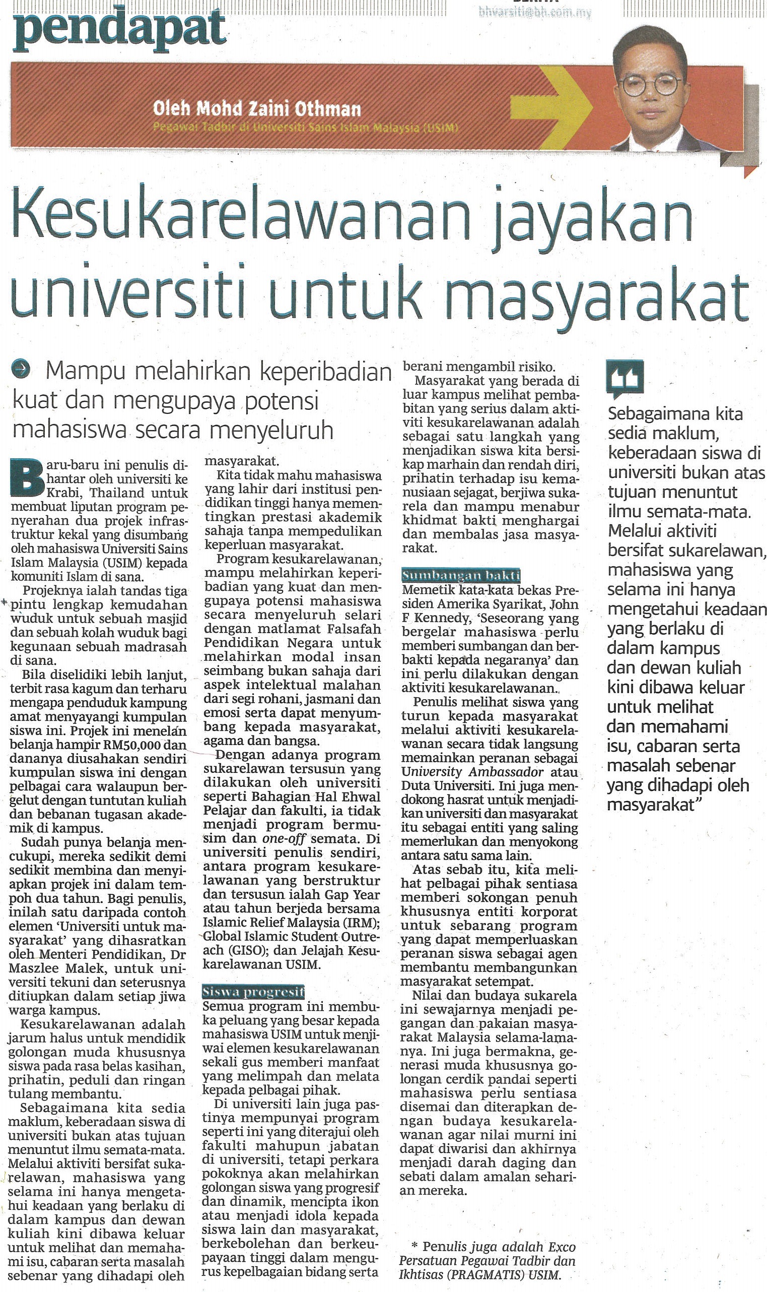 Kesukarelawanan Jayakan Universiti Untuk Masyarakat