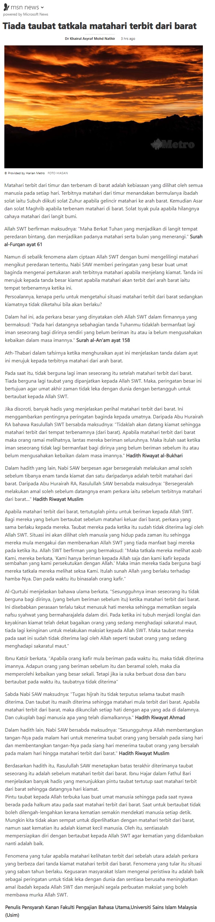 Tiada Taubat Tatkala Matahari Terbit Dari Barat
