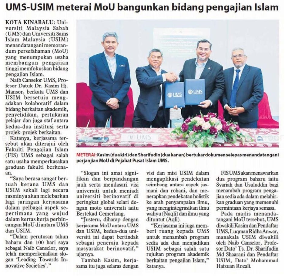 UMS-USIM meterai MoU bangunkan bidang pengajian Islam