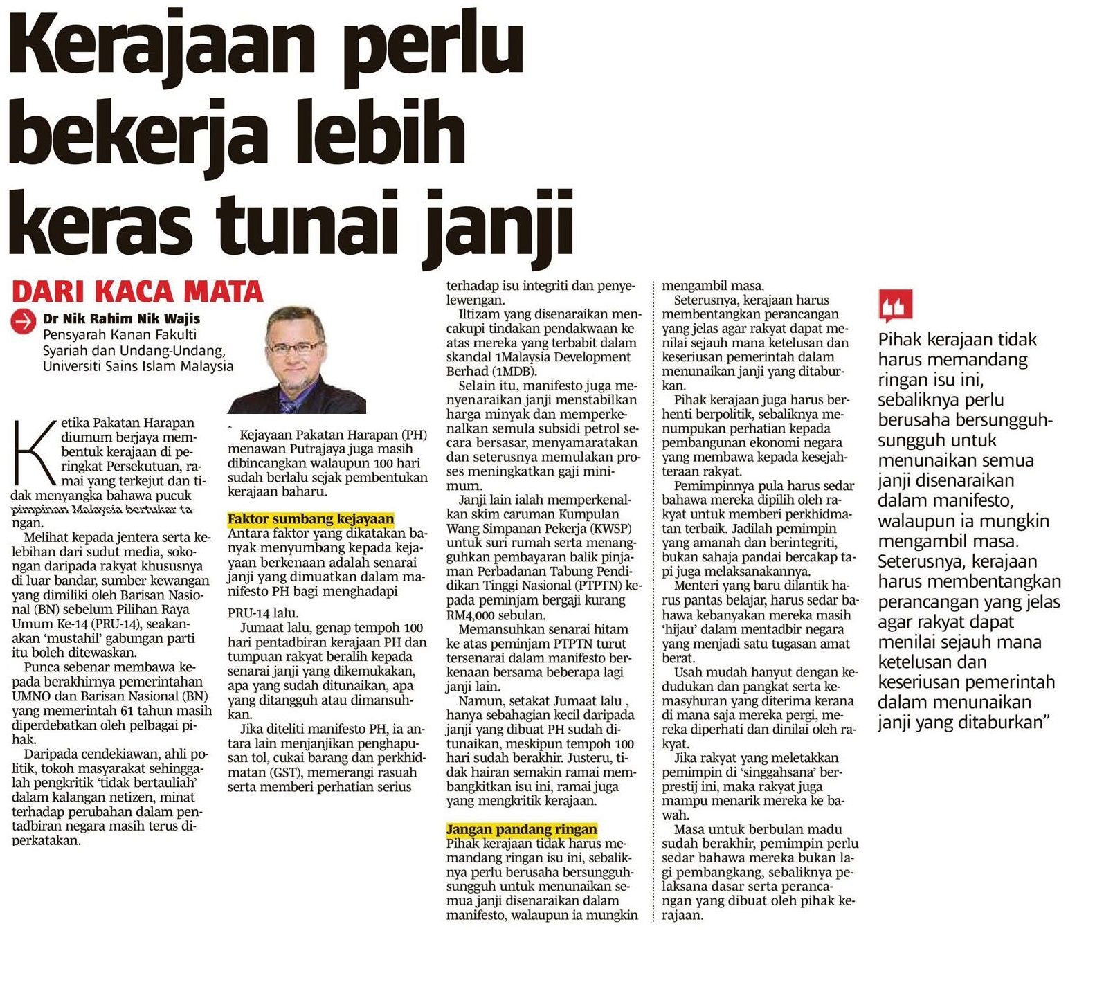 Kerajaan Perlu Bekerja Lebih Keras Tunai Janji