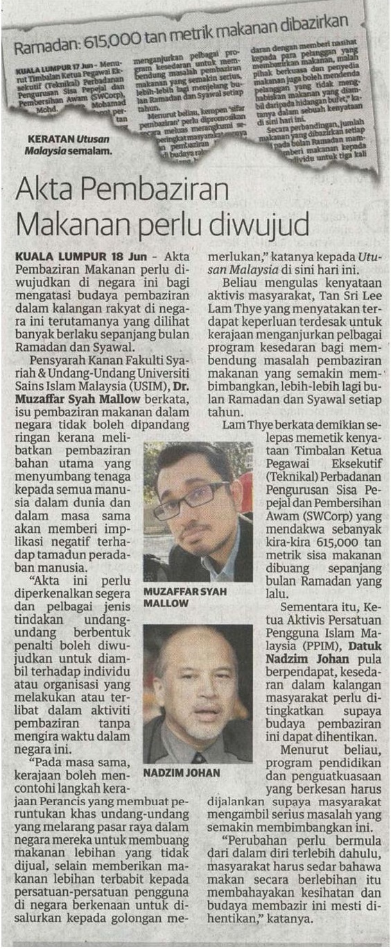 UTUSAN MALAYSIA 18 JUN 2018 MS 5 AKTA PEMBAZIRAN MAKANAN PERLU DIWUJUDKAN.jpg