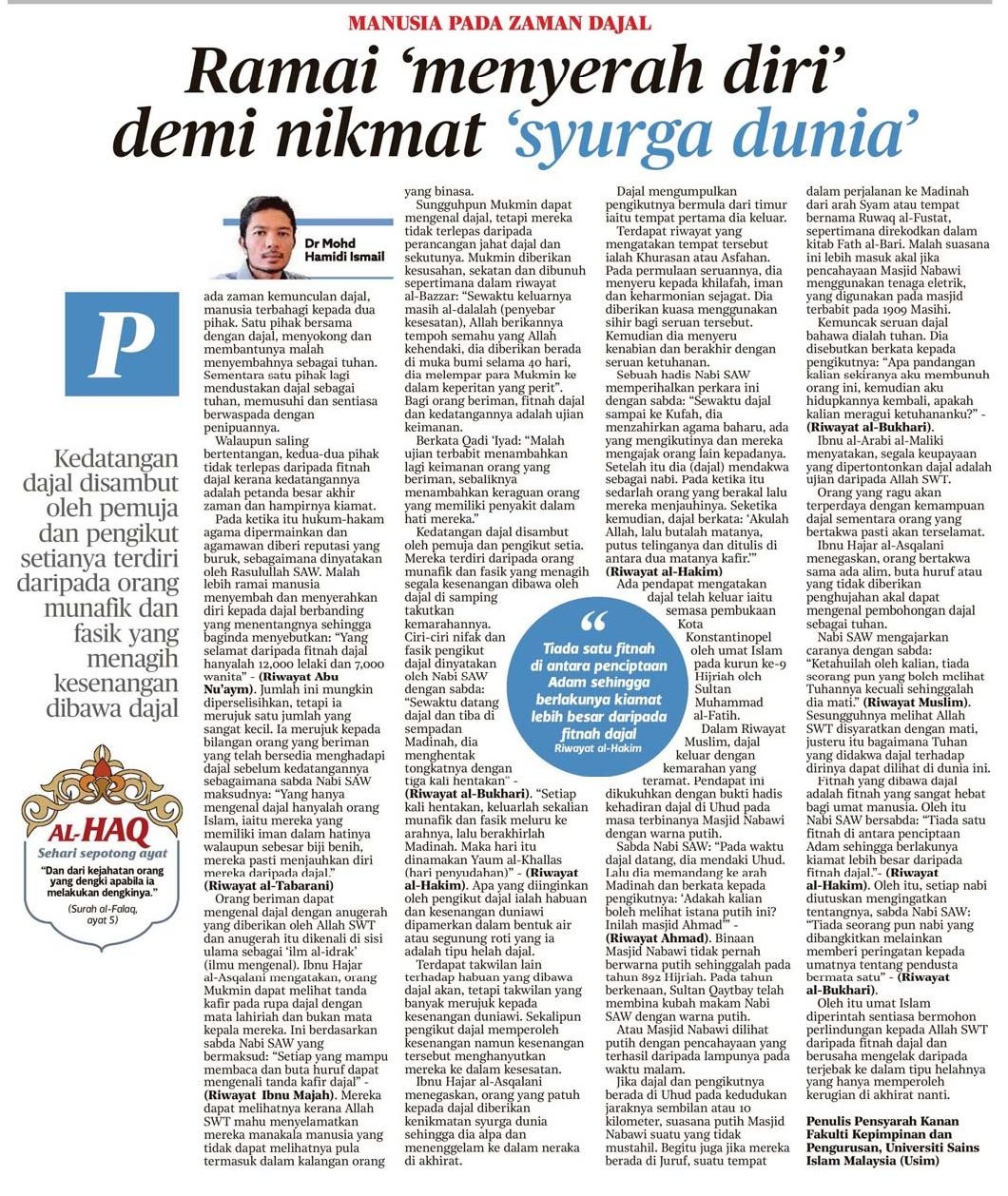 Manusia pada zaman dajal ramai 'menyerah diri' demi nikmat 'syurga dunia'