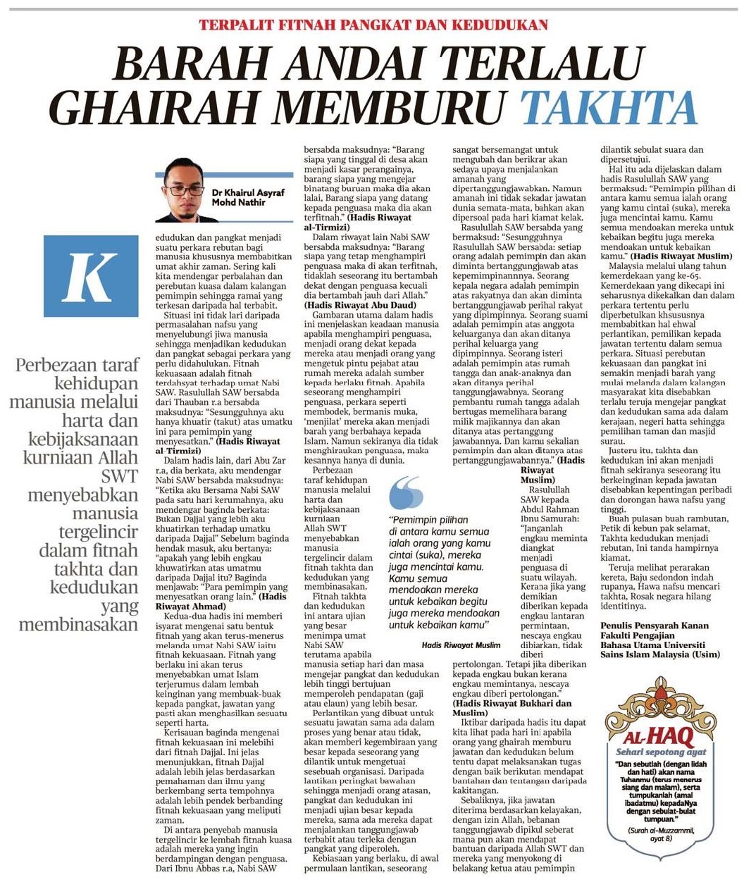 Barah Andai Terlalu Ghairah Memburu Takhta