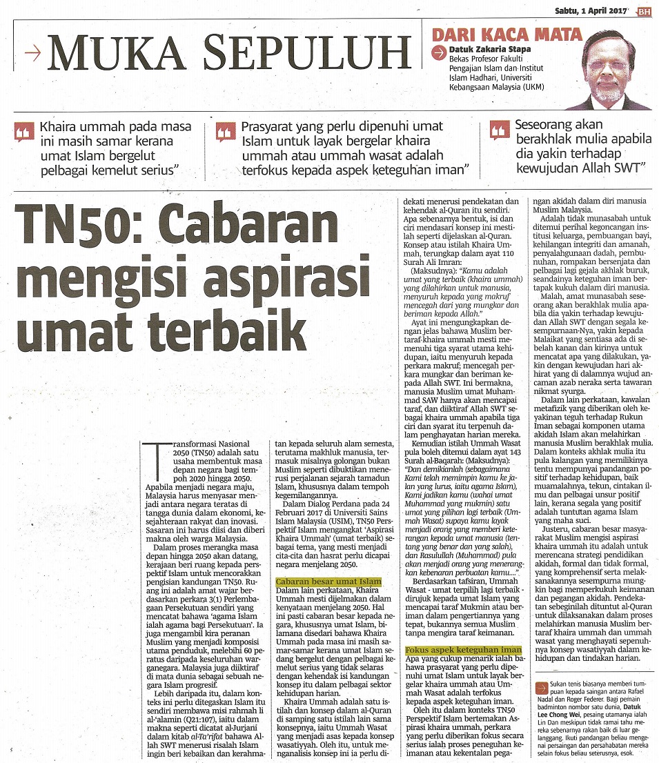BERITA HARIAN - TN50 CABARAN MENGISI ASPIRASI UMAT TERBAIK, 1 APRIL 2017, MS 10.jpg