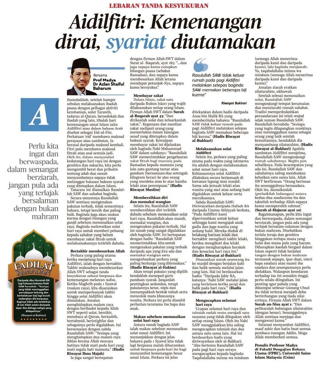 Aidilfiri:Kemenangan dirai, syariat diutamakan
