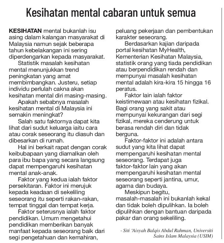 Kesihatan mental cabaran untuk semua