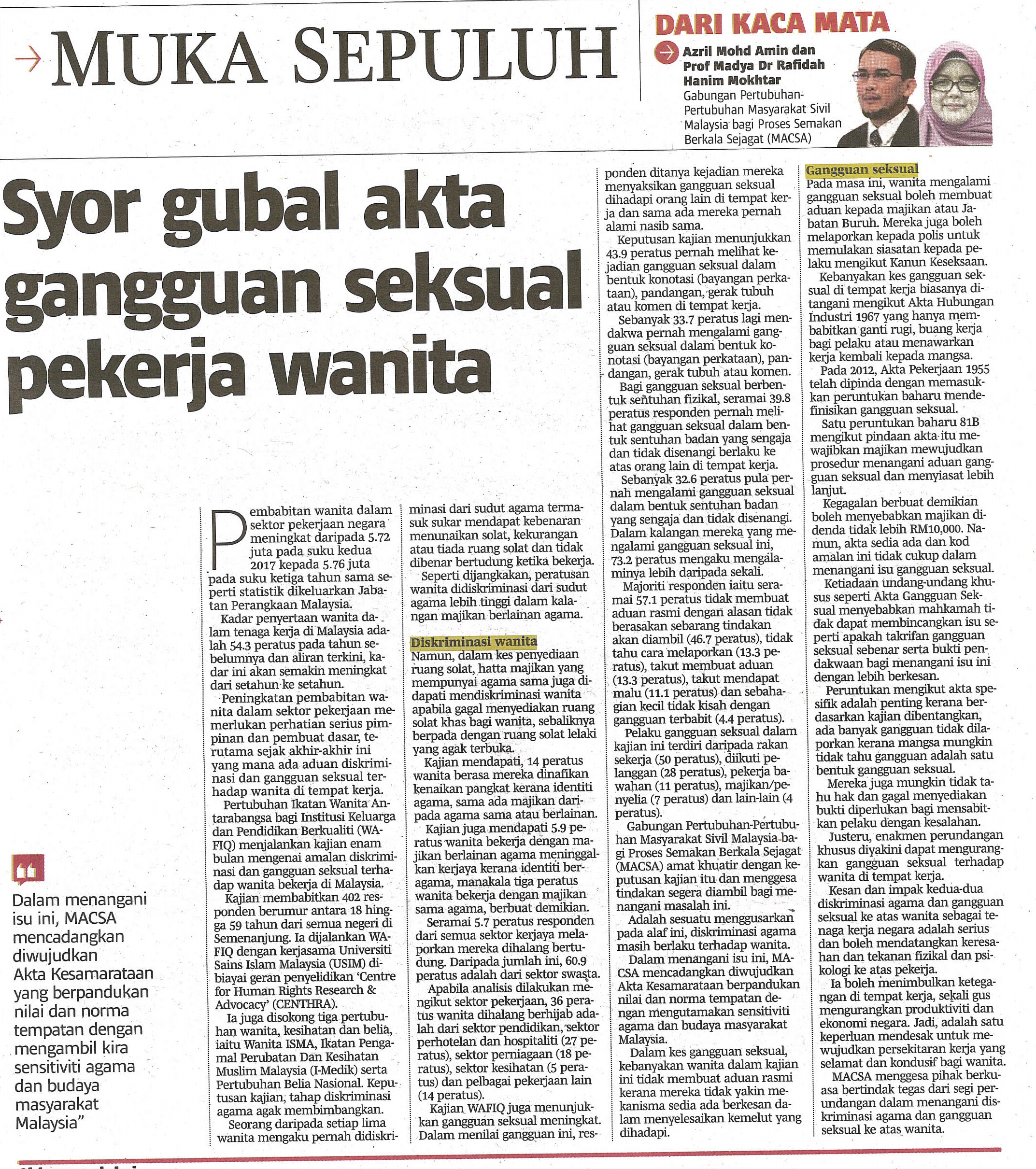 BERITA HARIAN 2 JULAI 2018 MS 10 SYOR GUBAL AKTA GANGGUAN SEKSUAL PEKERJA WANITA.jpg