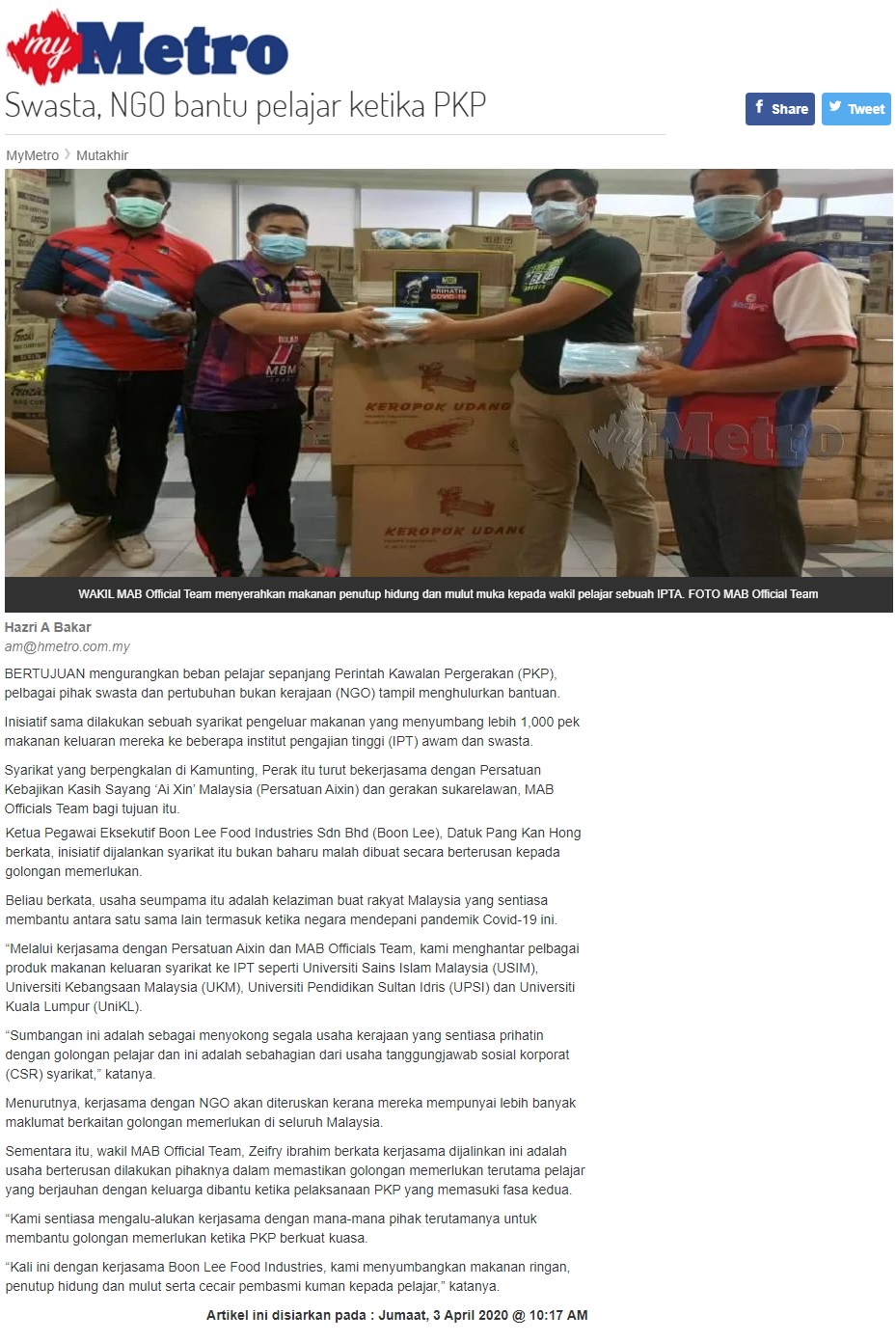 Swasta, NGO Bantu Pelajar Ketika PKP
