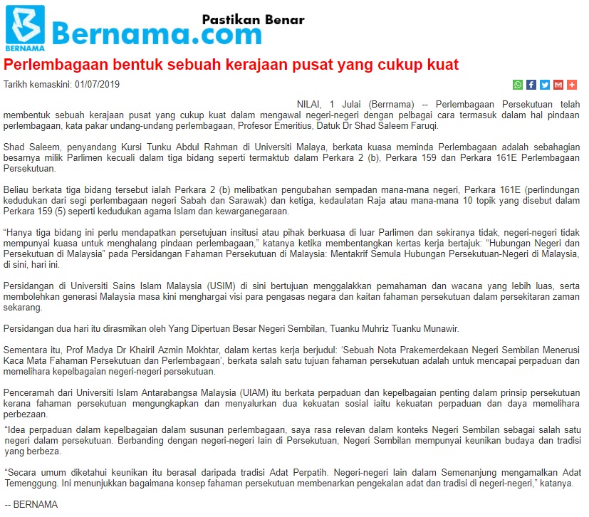 Perlembagaan Bentuk Sebuah Kerajaan Pusat Yang Cukup Kuat