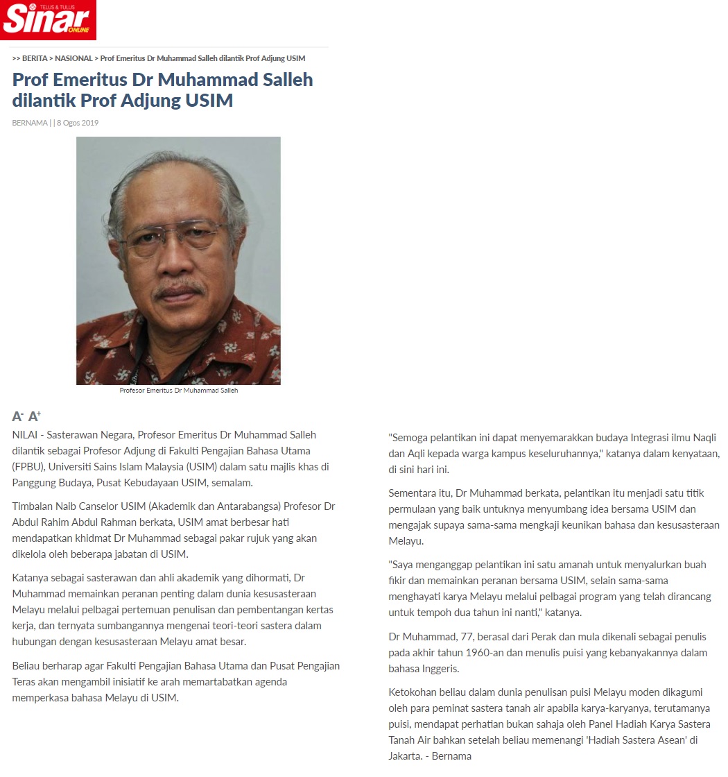 Prof Emeritus Dr Muhammad Salleh Dilantik Prof Adjung USIM