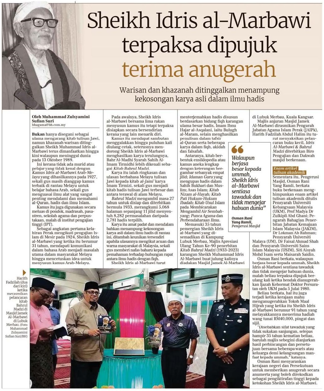 Sheikh Idris Al-Marbawi terpaksa dipujuk terima anugerah