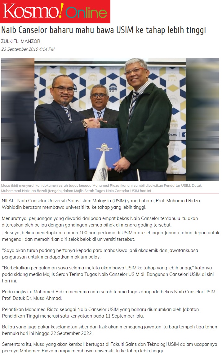 Naib Canselor Baharu Mahu Bawa USIM Ke Tahap Lebih Tinggi