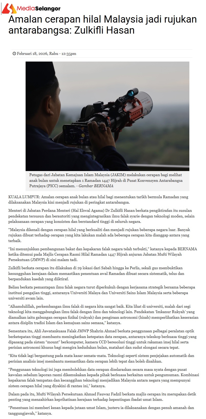AMALAN CERAPAN HILAL MALAYSIA JADI RUJUKAN ANTARABANGSA