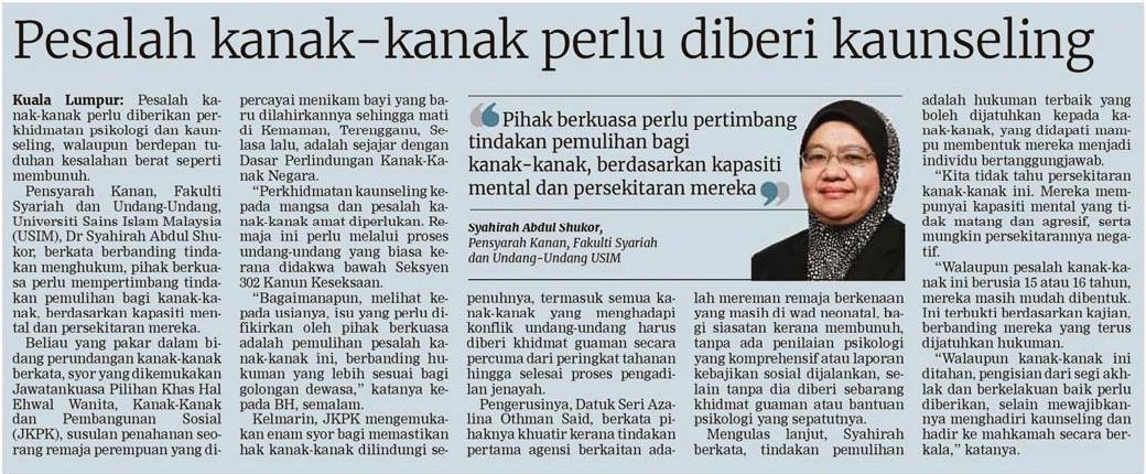 Pesalah Kanak-Kanak Perlu Diberi Kaunseling