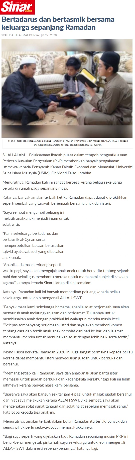 Bertadarus Dan Bertasmik Bersama Keluarga Sepanjang Ramadan