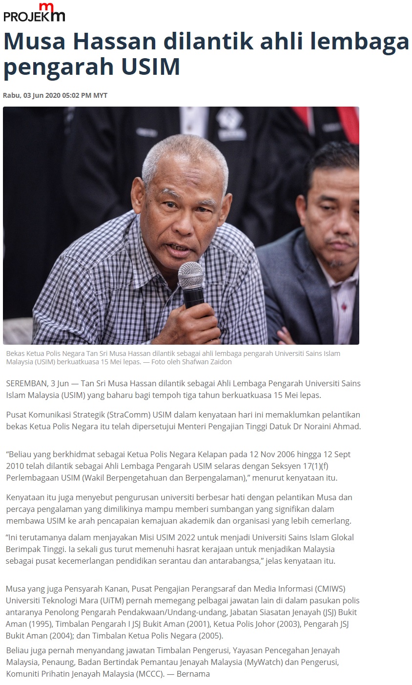 Musa Hassan Dilantik Ahli Lembaga Pengarah USIM